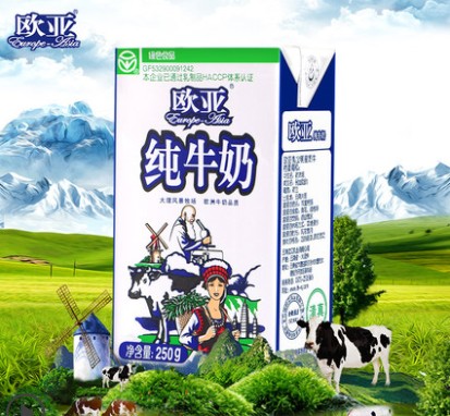 绿色食品 欧亚高原全脂纯牛奶250g*2